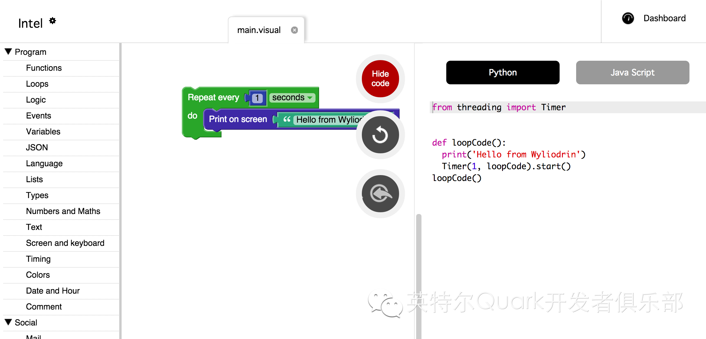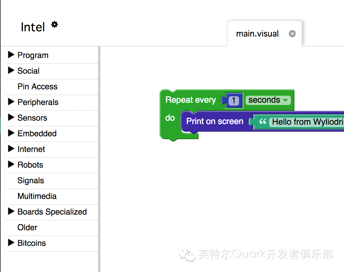 如何配置Intel Galileo暂且不表,后面会详细描述,这里先带着大家熟悉下在Wyliodrin平台下,Intel Galileo可以发挥出哪些优势。